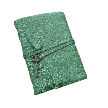 手作りグリーンレザージャーナル花柄エンボス加工ヴィンテージスケッチブックキー & ストラップロック付き旅行日記 & 販促用ノート